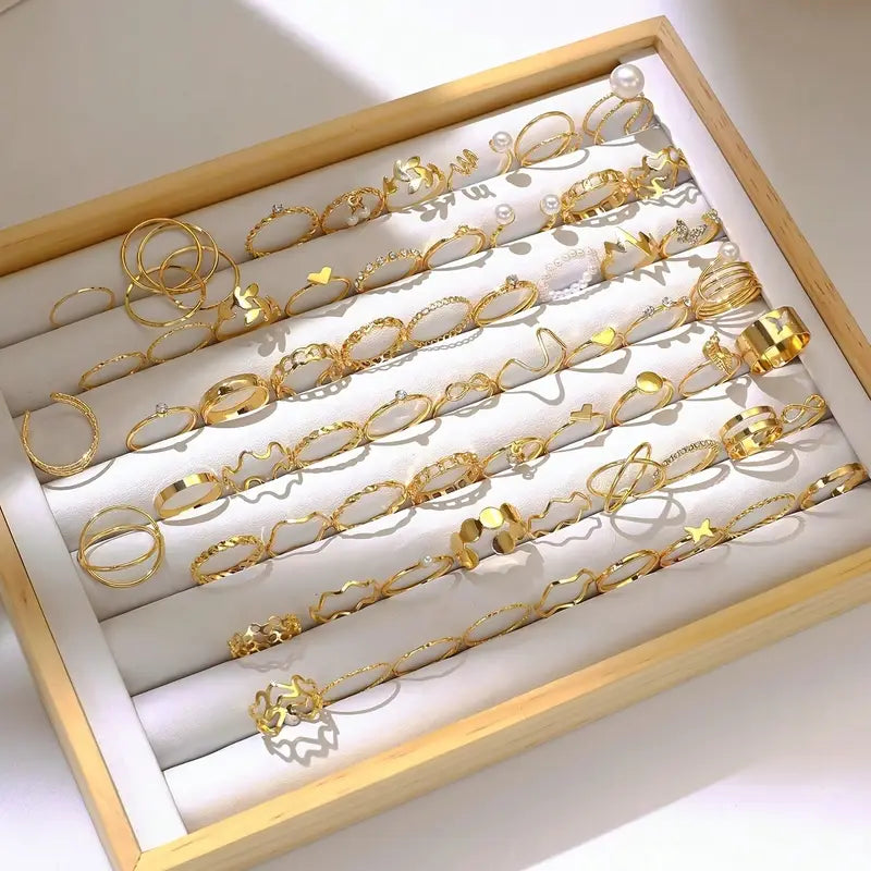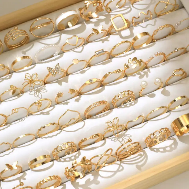 Ideal as women's fashion accessories UAE, this vintage jewelry set UAE combines elegance and versatility. Whether you’re looking for trendy ring set for women or elegant party accessories, this zinc alloy fashion rings collection delivers timeless beauty with a modern edge. Enjoy the chic look of gold-tone fashion rings with this complete stackable fashion rings UAE set.