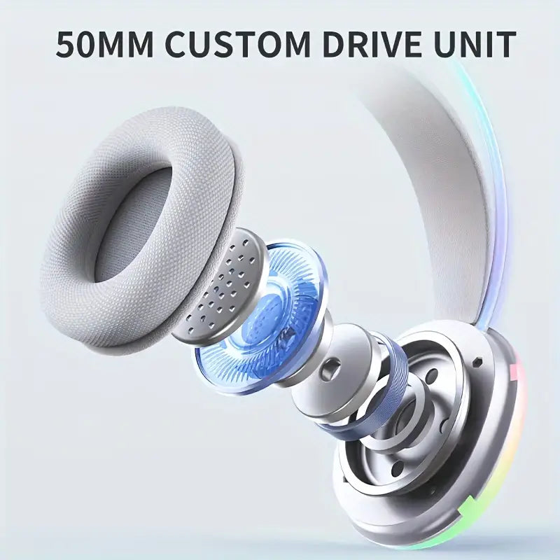 The wireless gaming headphones with mic provide freedom of movement without sacrificing clarity.This colorful RGB gaming headset is designed for comfort, featuring over-ear rainbow gaming headphones padding, ideal for long sessions. The gaming headset with rainbow LED lights gives your setup a stylish edge, and the wireless RGB headset for PC and PS5 ensures wide compatibility.Whether you're shopping for rainbow headphones for kids, teens, or pro gamers, the Bluetooth rainbow gaming headphones deliver powerful sound. Enjoy advanced features like noise cancellation, soft ear cups, and lightweight design.